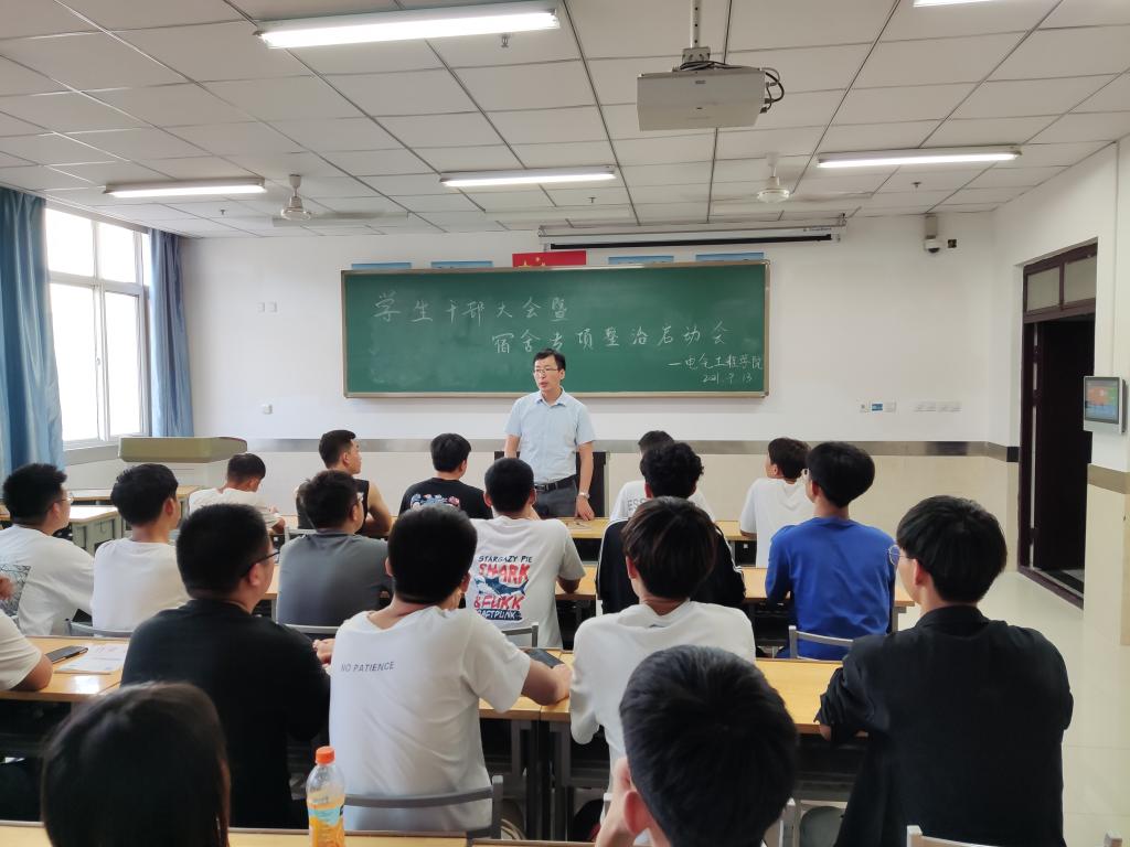 为建设一支胸怀崇高理想、心系同学、品学兼优、作风扎实、清新阳光的学生干部队伍,9月13日下午,电气工程学院组织19级、20级各班班长、团支书、学生会干部在崇明楼502教室主持召开全体学生干部大会暨宿舍专项整治启动会。会议由电气工程学院学工办主任赵松老师主持。