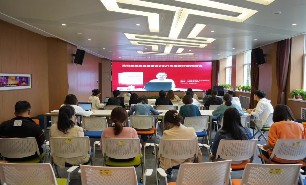 为切实做好2021版思政课教材的理解及使用工作,帮助广大思政课教师准确把握教材基本精神和主要内容,根据教育部教材局《关于做好高校思想政治理论课2021年版教材使用培训的通知》要求,马克思主义学院于9月27日下午在VR智慧思政实训中心组织全体思政课教师参加了中宣部理论局和教育部教材局主办、高等教育出版社承办的线上“高校思想政治理论课2021年版教材使用培训”首场活动。