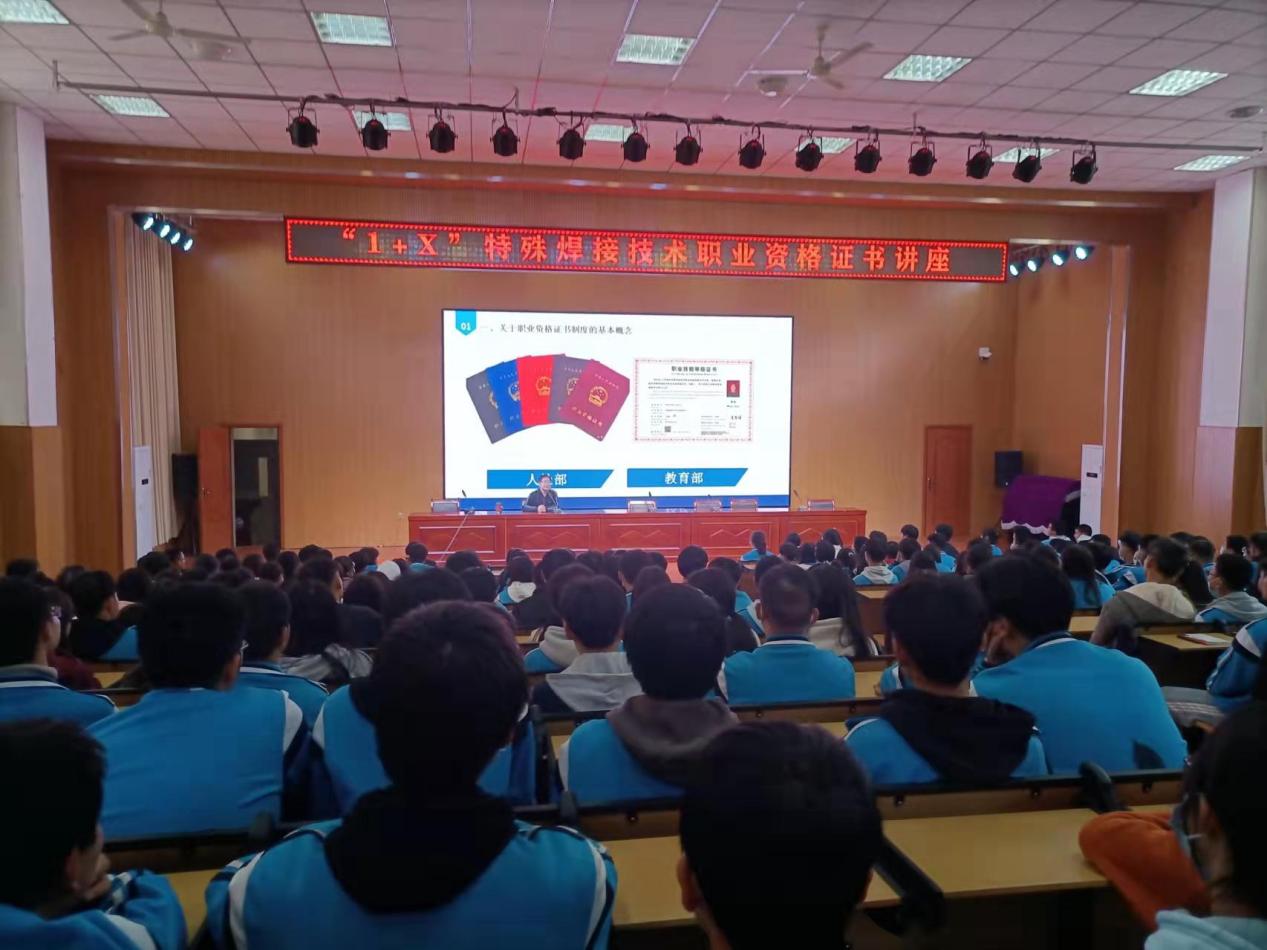 2021年11月2日,我校材料工程学院智能焊接技术专业教师杨新华应邀到武功职业教育中心进行了“1+X”特殊焊接技术职业资格证书试点工作讲座,职教中心500余名师生在报告大厅聆听了讲座。讲座中,杨新华老师以1+X证书制度内涵、我校智能焊接技术专业“1+X”试点工作做法及成效两方面进行了交流。
