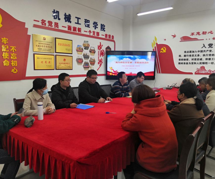 11月10日下午,机械工程学院教师第一支部在行知楼E410开展“我为师生办实事”主题党日活动,活动由教师第一支部书记张文亭主持。