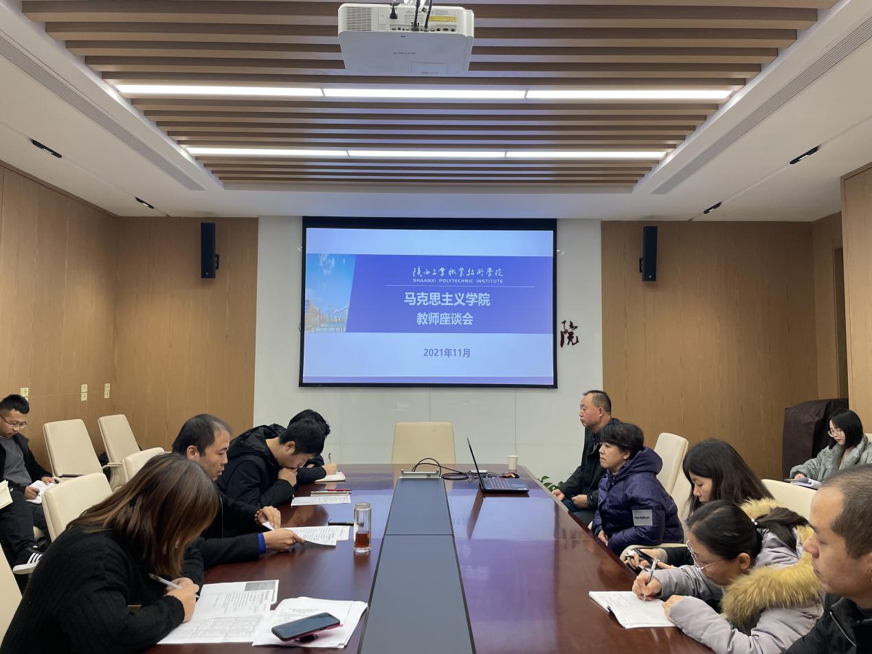 教师座谈会上,王辉副院长首先领学了学校近期出台的《课程考核管理办法》、《教师课堂教学准入实施办法》等制度规范,要求大家会后认真研读,对标落实执行。随后,针对本学期以来思政课教学运行和管理中存在的问题及改进思考,教师门进行了详细充分的交流探讨,并提出了改进教学方法、提高教学质量的建议。大家一致认为,学院开展期中教学检查是为了查找评估教学过程中存在的问题,总结巩固教学改革和管理的经验,确保教学质量的不断提高。全体思政课教师要及时查摆问题、查缺补漏、互通有无,不断提高自身修养和素质,真正成为大学生思想上的指导者和引路人。
