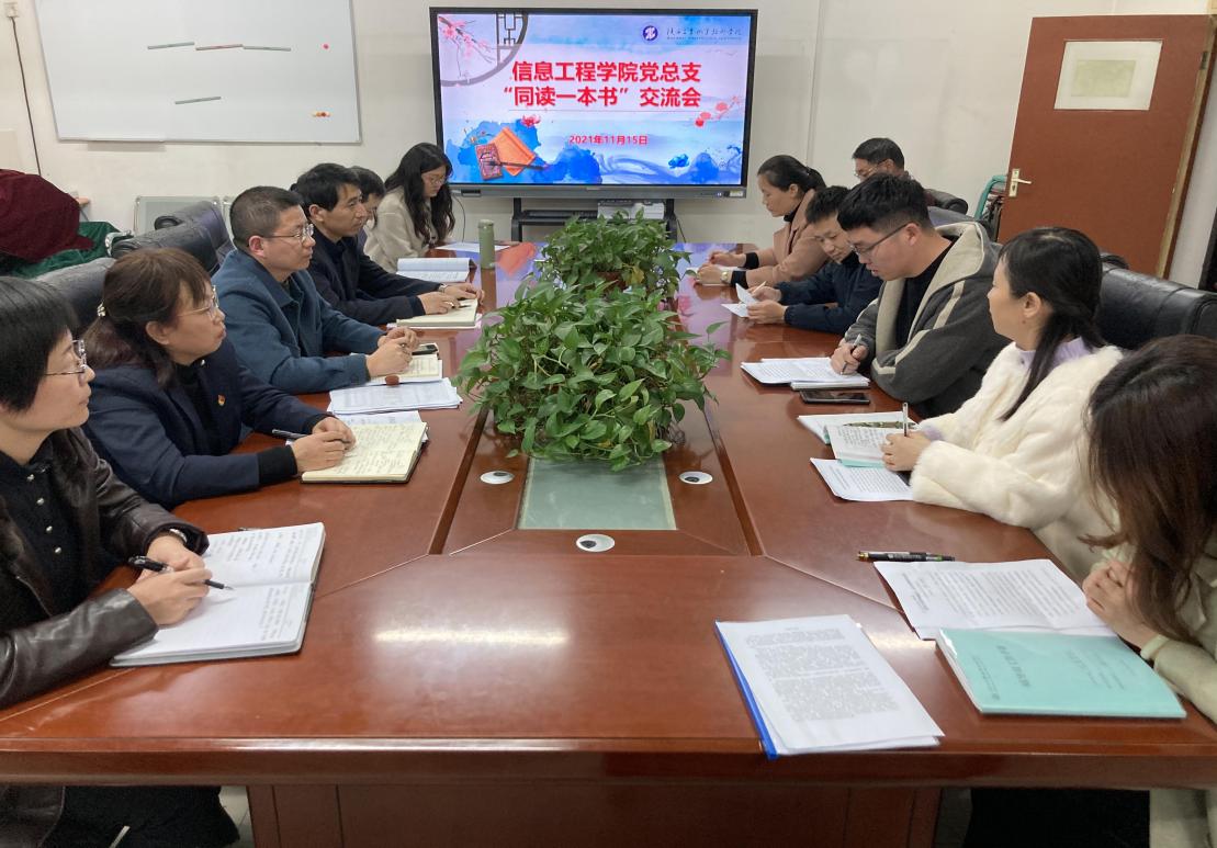 11月15日下午,信息工程学院党支部在崇文楼A806室举行了“同读一本书”分享交流会,党总支副书记郭新玲主持,全体教师党员参加。