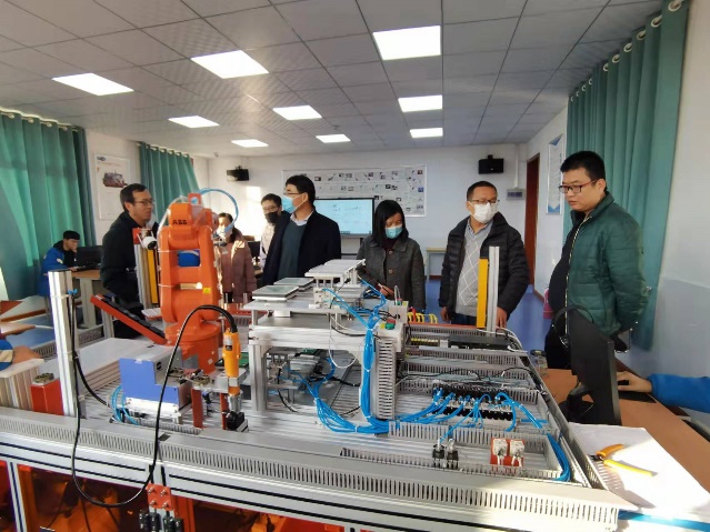 首先,礼泉县职教中心校长陈煜欢迎我院一行的到来,并对我院在咸阳市创建国家产教融合试点城市的关键时刻提供的支援与帮扶给予了高度的赞赏与评价。其次,段文洁副院长为职教中心全体教职员工作“产教融合、校企合作”专题报告,段文洁副院长从产教融合要求与现状、思路与举措、探索与实践三方面,通过真实案例分析,介绍了我院在校企合作方面的经验和做法,为职教中心在校企合作方面提供了经验借鉴。随后,刘军旭书记一行4人查看了解礼泉职教中心工业机器人实训室,与实训管理人员、专业教师及现场实习学生进行了互动交流,向他们介绍了我院在实训室建设、实训教学方面的一些经验和做法。最后,召开了机电技术专业(工业机器人方向)建设研讨会,双方就产教深度合作、学生技能竞赛指导、专业课程建设、工业机器人技术1+X证书试点等问题展开了深入交流,职教中心相关专业教师就具体专业技术问题提出了需求,我院相关教师就具体专业问题进行了积极有效的沟通与交流。
