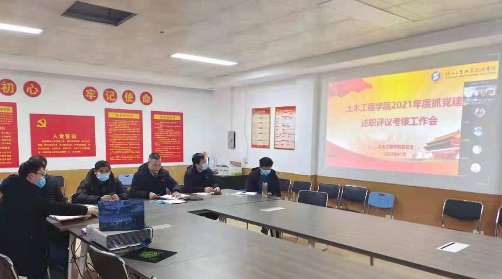 按照学校党委年度工作安排,1月12日下午,土木工程学院党总支在格物楼219室召开2021年度党支部书记抓党建述职评议考核工作会,会议采用线上线下结合的形式,土木工程学院院长杨谦、党总支委员、支部书记及各支部委员参会,党总支书记张科海主持会议。