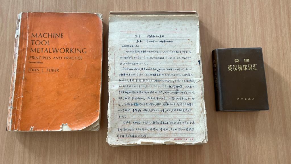 《Machine Tool Metalworking》这本书是聂老师于上世纪70年代在北京购买的一本原版外文书籍,翻译手稿是李铁尧老师对该书进行翻译时所撰写的。李铁尧老师生前为原咸阳机器制造学校机制专业科主任,期间因主持原机械部在我校机制专业教改试点等工作,成绩突出,获得“陕西省劳动模范”称号。这份珍贵的手稿及外文原著为图书馆馆藏增添了一份宝贵的资源。