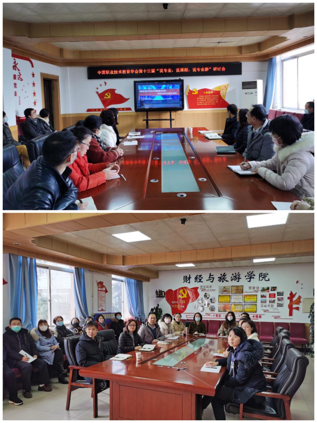 2022年2月19-20日,中国职业技术教育学会第十三届“说专业•说课程•说专业群”研讨会在北京、山西两地连线举办。财经与旅游学院组织教研室主任、会计教研室全体教师在学校格物楼408线上观看和学习,学校教务处副处长李龙龙莅临督导,财经与旅游学院院长吴姗娜主持会议。