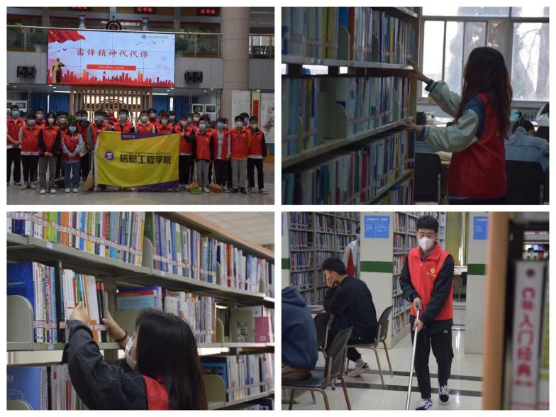 “践”雷锋无私精神,强化信息学子担当。为增强信息学子责任感,3月10日信息团总支自发组织40名志愿者在学校图书馆开展“践行雷锋精神”活动。志愿者们通过图书馆老师的讲解培训后,分组进入各借阅室对上千余本的图书进行分拣整理、归类上架。最后,志愿者在活动总结中分享和交流了志愿服务相关的书籍、故事,使志愿服务精神得到进一步升华。