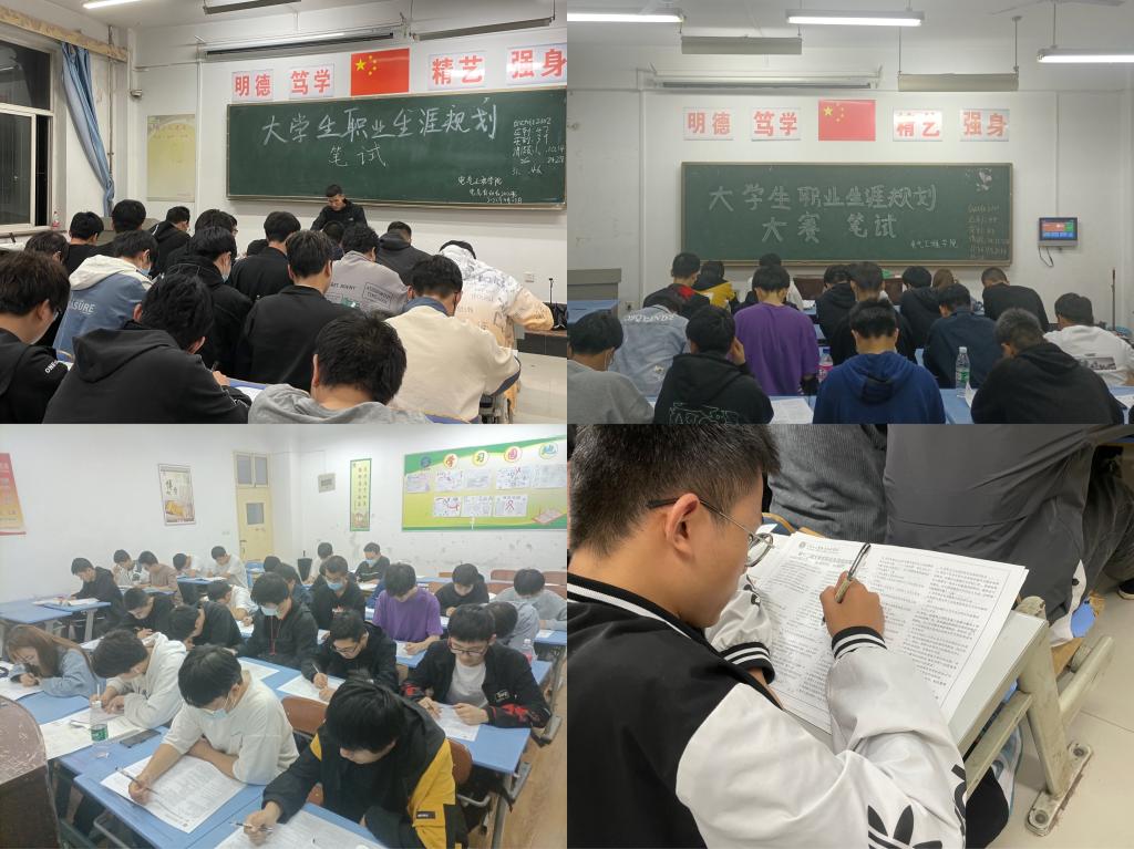 本次考试以单项选择、多项选择等题型,全面考察了参赛选手对职业生涯规划的意义、形式、方法等方面的内容掌握程度。各位参赛选手通过前期准备认真学习了《职业生涯的规划与就业指导》课程,并进行了考前练习,对职业生涯规划的相关知识了然于胸。考场上,同学们快速进入了考试状态,专心致志,凝神思考,认真完成了本次考试。