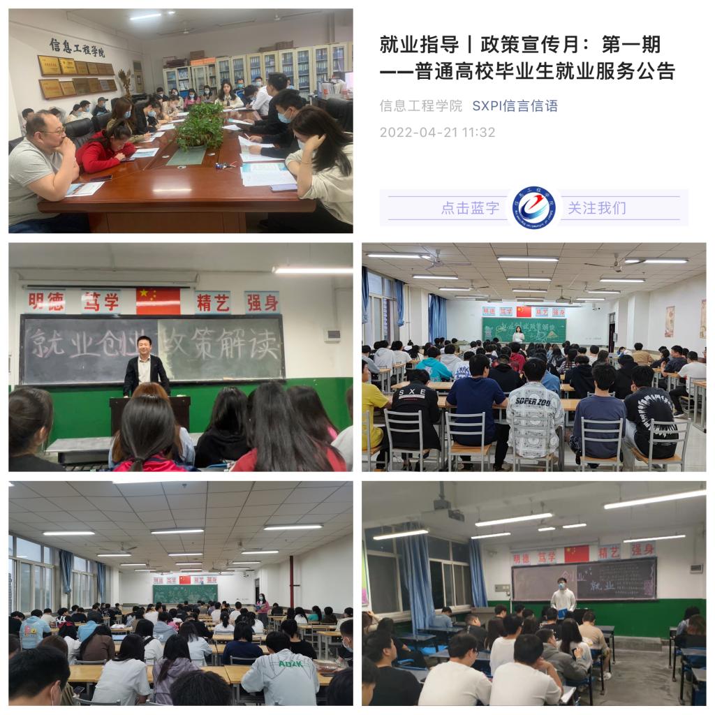 为贯彻落实学校“关于开展2022年高校毕业生就业创业政策宣传月活动”的要求,增强学生对就业政策的了解,正确分析就业形势。4月24日晚,信息学院在崇文楼806会议室召开了就业创业政策宣讲会,学工办主任穆昌、2020级全体辅导员及班主任参加了会议。
