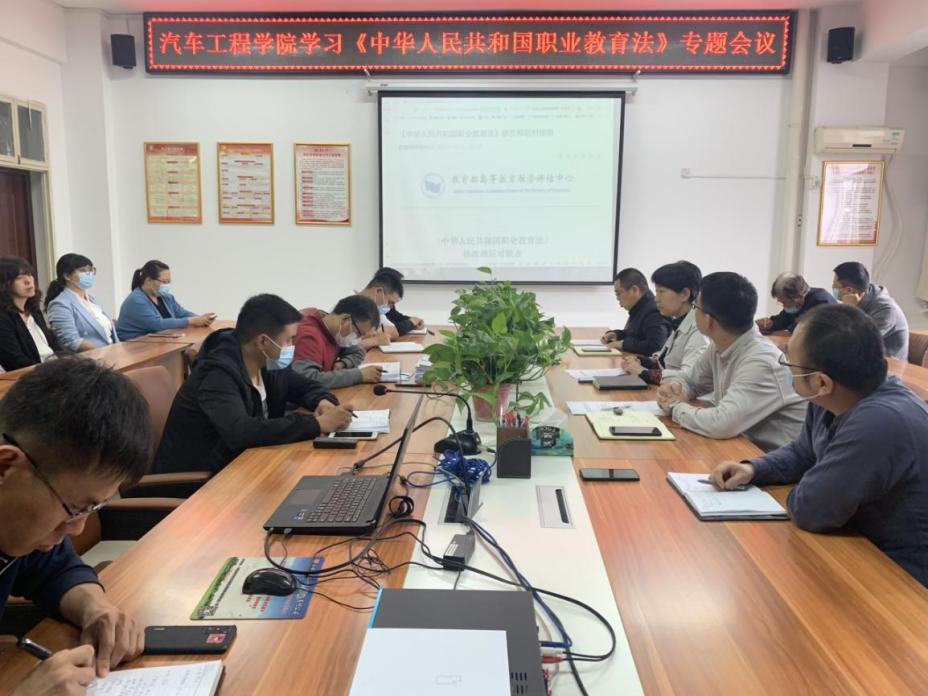 为深入学习贯彻新修订《中华人民共和国职业教育法》最新精神,5月9日下午,汽车工程学院党总支在崇文楼A505会议室组织召开《中华人民共和国职业教育法》专题学习会,会议由汽车工程学院党总支书记高亚宁主持,全体教职工参加。