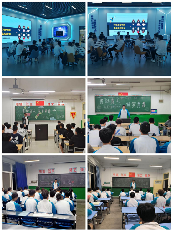 5月23日下午,机械学院组织国家奖学金、国家励志奖学金及今年考上研究生和专升本的学生代表10人,在先进制造技术工程中心为全体学生干部做了“中国梦·谁的青春不奋斗”经验分享交流会,希望同学们珍惜大学生活,扎实专业技能,练就过硬本领,在享受国家资助的同时更好的向身边的同学树立榜样,做出表率。5月23日晚,机械学院召开“资助育人,筑梦青春”主题班会,各班班委向同学们介绍国家资助政策的同时更勉励全体学生要自强自立,努力奋斗,做一个对家庭对社会有贡献的人。