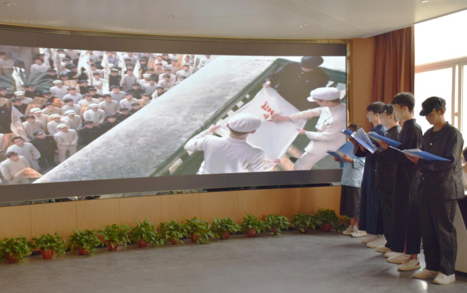 “师生同台”送教活动。来自信息工程学院学生第一党支部的50名师生党员在马院实训中心主任陈杜昊的引领下,先后在AR思政长廊学习党史理论,在VR智慧思政实训中心沉浸式做体验、参观八一南昌起义虚拟纪念馆。随后,在VR智慧思政实训中心,王战辉老师和秦马研习社成员席战龙同学以“学好本领上前线——做堪当民族复兴大任的时代新人”为主题,为广大党员师生分段开展现场送教。王战辉老师从青年的使命导入课程,用1938年8月朱德总司令视察安吴青训班题词“学好本领上前线”,进一步引出青年的使命是什么?怎样来履行使命?通过图像展播、线上问答的方式,让学生“身临其境”了解了青训班的光辉使命,体验了广大青年在民族生死存亡之际挺身而出、为国战斗的可贵精神,指出新时代青年的使命就是努力成为堪当民族复兴大任的时代新人。席战龙同学从自身的成长出发,分享了作为新时代青年的使命,从立大志、明大德、成大才、担大任四个层面讲述了今天的青年该怎么履行使命的问题,立志扎实学习好知识和技能,提升自身文明修养水平,练就过硬本领来回报社会、建设祖国。