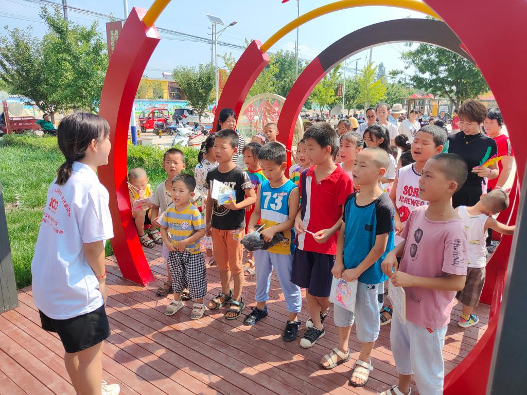 为落实《国家通用语言文字普及提升工程和推普助力乡村振兴计划实施方案》,深入贯彻习近平总书记关于教育以及语言文字工作的重要指示批示精神,加大农村地区国家通用语言文字推广力度,助力乡村振兴,铸牢中华民族共同体意识。财经与旅游学院“推普助力乡村振兴下乡传递温暖真情”社会实践团队于8月4日在淳华县石桥镇秦庄村开展“童语语同声,推普助振兴”社会实践活动。