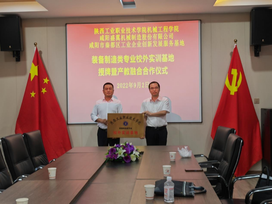 9月2日下午,我校机械工程学院“装备制造类专业校外实训基地”揭牌暨产教融合合作仪式在咸阳盛翼机械制造股份有限公司会议室隆重举行。咸阳市秦都区工信局中小企业服务中心主任李瑛、机械工程学院党总支书记苏宏志、西部产教融合研究院院长王建军、先进制造精雕产业学院负责人王帅、咸阳盛翼机械制造股份有限公司董事长何军峰等相关人员参加了会议,会议由咸阳盛翼机械制造股份有限公司总经理贾天社主持。
