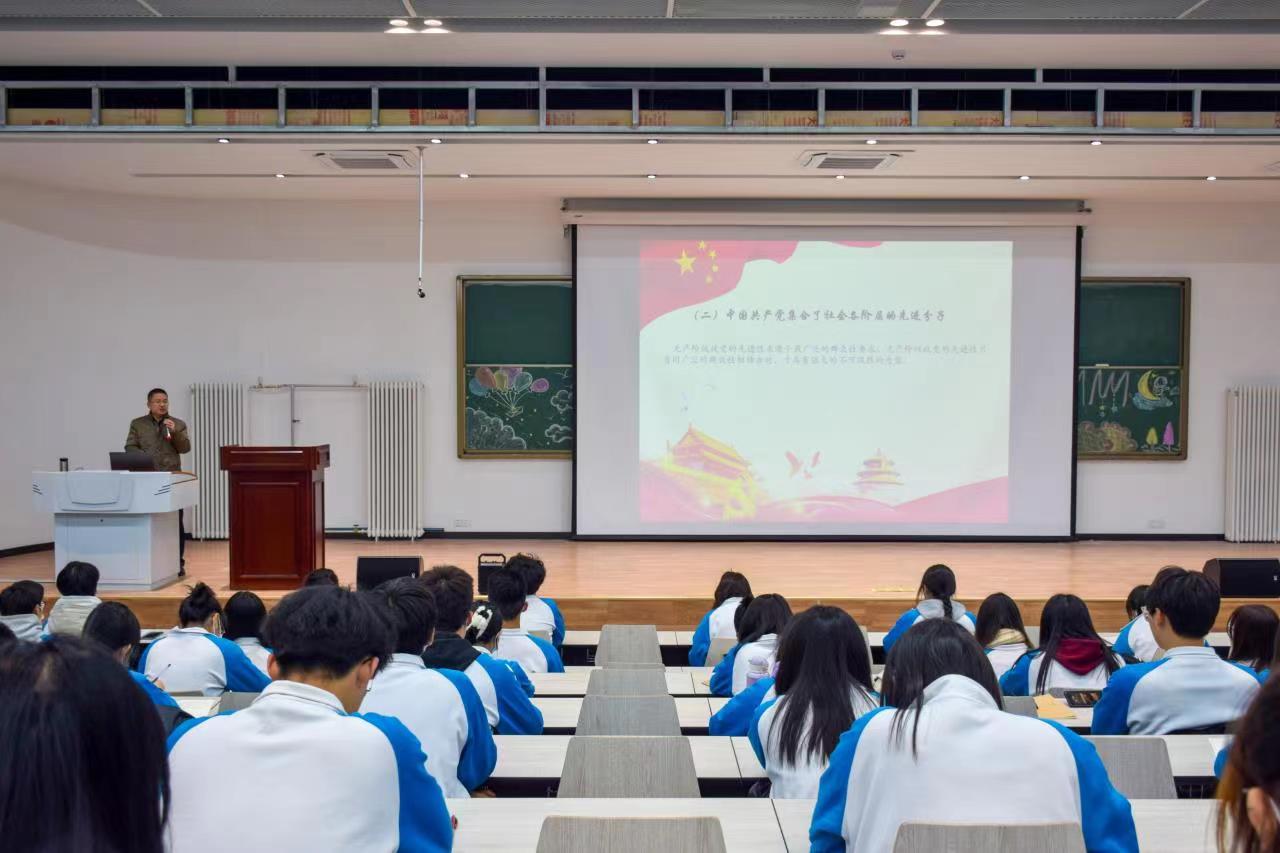党总支书记闫军从党的二十大的主题、主要成果和报告起草过程,过去五年的工作和新时代十年的伟大变革,马克思主义中国化时代化,中国式现代化,全面建设社会主义现代化国家的目标任务,坚持党的全面领导和全面从严治党,应对风险挑战等七个方面,对党的二十大精神进行了全面深入系统的宣讲领学,并与学生交流了学习体会。