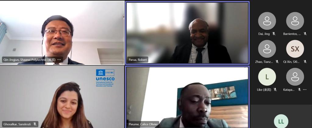 为进一步推进我校联合国教科文组织职教联系中心工作,3月8日,国际教育学院与联合国教科文组织总部、国际职教中心、驻华代表处以视频形式举行工作会议。联合国教科文组织巴黎总部青年、素养与技能发展部项目专家Hiromichi Katayama先生、联合国教科文组织职教中心秘书处项目组组长Olivier Pieume先生、亚太区协调员Kenneth Barrientos女士、项目助理Sanskruti Ghosalkar女士、联合国教科文组织驻华代表处教育项目专家Robert Parua先生、项目助理Zhao Tianzhou女士,我校国际教育学院院长秦景俊及部门成员参加了本次会议。会议由Robert Parua先生主持。