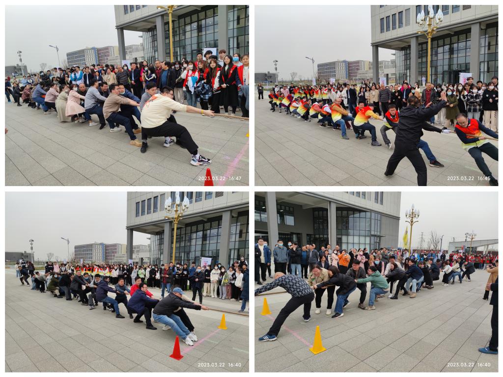 为丰富广大教职工业余文化生活,促进部门间的交流,增强团队凝聚力,推进全民健身运动,3月15日、22日,经开校区教职工拔河比赛在湖前广场举行,信息工程学院、商贸与流通学院、财经与旅游学院、职能部门联队等4个代表队共80余人参加了比赛。