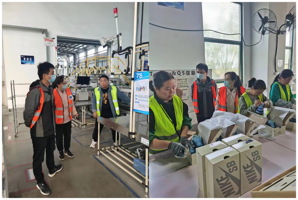 首站考察赴宝通易捷智能科技(苏州)有限公司,校企双方就目前企业的发展现状、岗位能力需求、人才培养模式以及岗位的晋升等方面进行交谈。随后,专业教师深入耐克鞋服仓配物流园区,了解不同岗位的工作特点,员工的工作强度以及整体的作业流程等,校企双方一致认为,培养学生的职业技能和职业素养同等重要,也是企业赖以生存的根本。