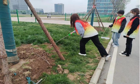 商贸学院学生第一党支部开展“绿色校园,你我有责”志愿服务活动