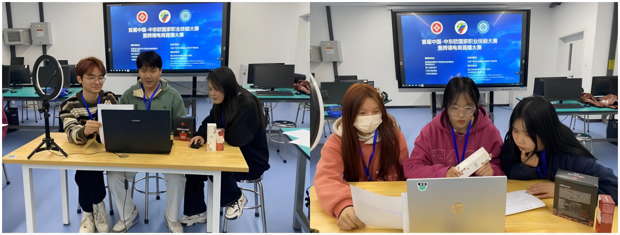 本次比赛由中国—中东欧国家职业院校产教联盟主办,教育部全国电子商务职业教育教学指导委员会、浙江省教育厅、宁波市教育局、宁波市商务局为指导单位。大赛分为中国国内和中东欧国家两个赛道,其中国内赛道由实操比赛和理论比赛两部分组成,均采用线上形式。理论赛主要比拼用户定位、商品分析与选定、策划营销方案、直播营销、顾客体验、场景设计与服务、中东欧相关知识等理论知识。实操赛主要比拼针对中东欧商品的选品规划、营销活动设计、直播准备、直播实施等的实践操作能力。理论和实操得分占比为4:6。