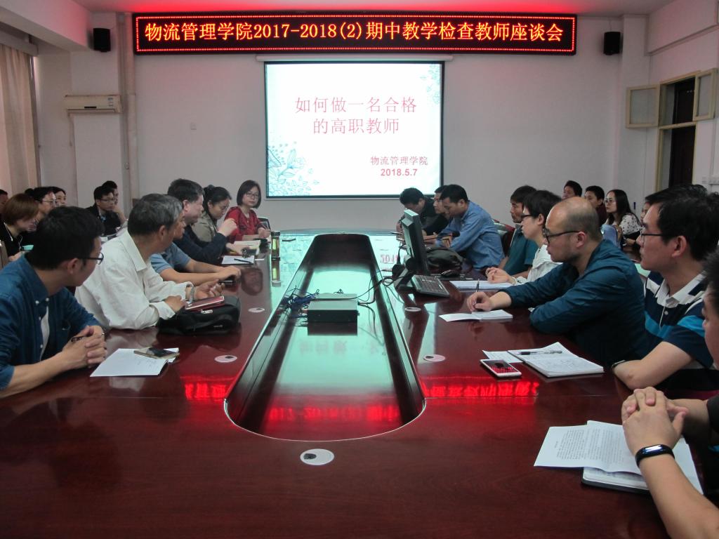5月7日下午,物流管理学院全体教师在崇文楼501会议室召开期中教学检查教师座谈会,本次座谈会以“如何做一名合格的高职教师”为主题,由物流学院院长李选芒主持。
