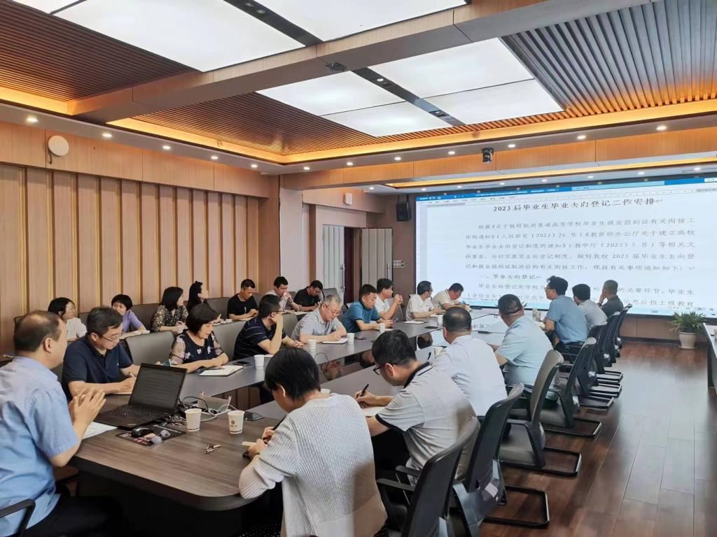 为落实相关要求,我校于6月25日下午在崇文楼九楼第一会议室召开了毕业生毕业去向登记工作专题会议。副校长段峻、学生处、信息化与网络安全处、保卫处、就业指导处及各二级学院院长、党总支书记、学工办主任等部门相关人员参加了会议。