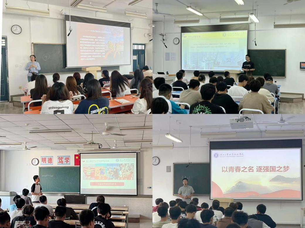 在马院教师暑假期间的精心准备下,马院以“以青春之名,逐强国之梦”为主题,紧扣时事、聚焦热点,分“勇于担当,擦亮新时代青春底色”“敢于拼搏,绘就新时代最美画卷”“忠于使命,争做新时代优秀写手”三个模块,围绕新时代青年以青春助力中国式现代化的榜样事迹开展精彩授课,为同学们送上了一堂内容丰富、思想深邃的思政“开学第一课”,引导广大工院学子倾听时代脉动与个人际遇的共鸣,思考如何在逐梦中国式现代化中担起国之重托。
