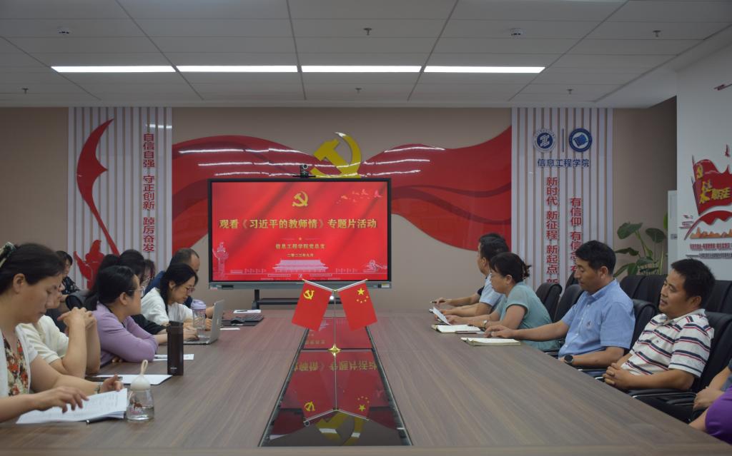 为做好2023年教师节庆祝工作,展示党的十八大以来习近平总书记对广大教师的关心关怀,根据学校相关工作安排,9月11日,信息学院党总支组织全体教师开展观看《习近平的教师情》专题片活动,信息学院全体教师参加了会议。本次会议由党总支副书记郭新玲主持。