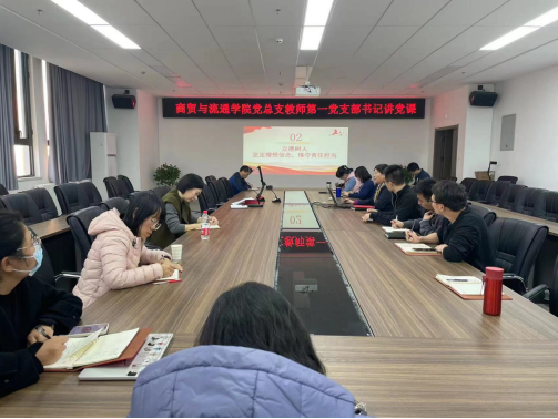 11月27日,商贸与流通学院党总支教师第一党支部书记晋淑惠同志在崇理楼E604以《立德树人担使命 铸魂增智育新人》为题,为商贸与流通学院教师第一党支部全体教师讲授了一堂主题鲜明、思想深刻的党课。