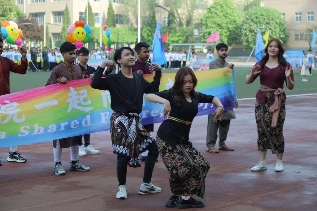 留学生运动员与中国学生同台竞技,感受着运动带来的魅力,体会着拼搏带来的喜悦。运动会不仅仅是一场体育赛事,更是留学生与中国学生共同参与的校园文化交流活动。来自孟加拉国的米亚说道,“能够与来自中国和其他国家的同学一起准备开幕式表演,将成为我校园生活的美好回忆。”