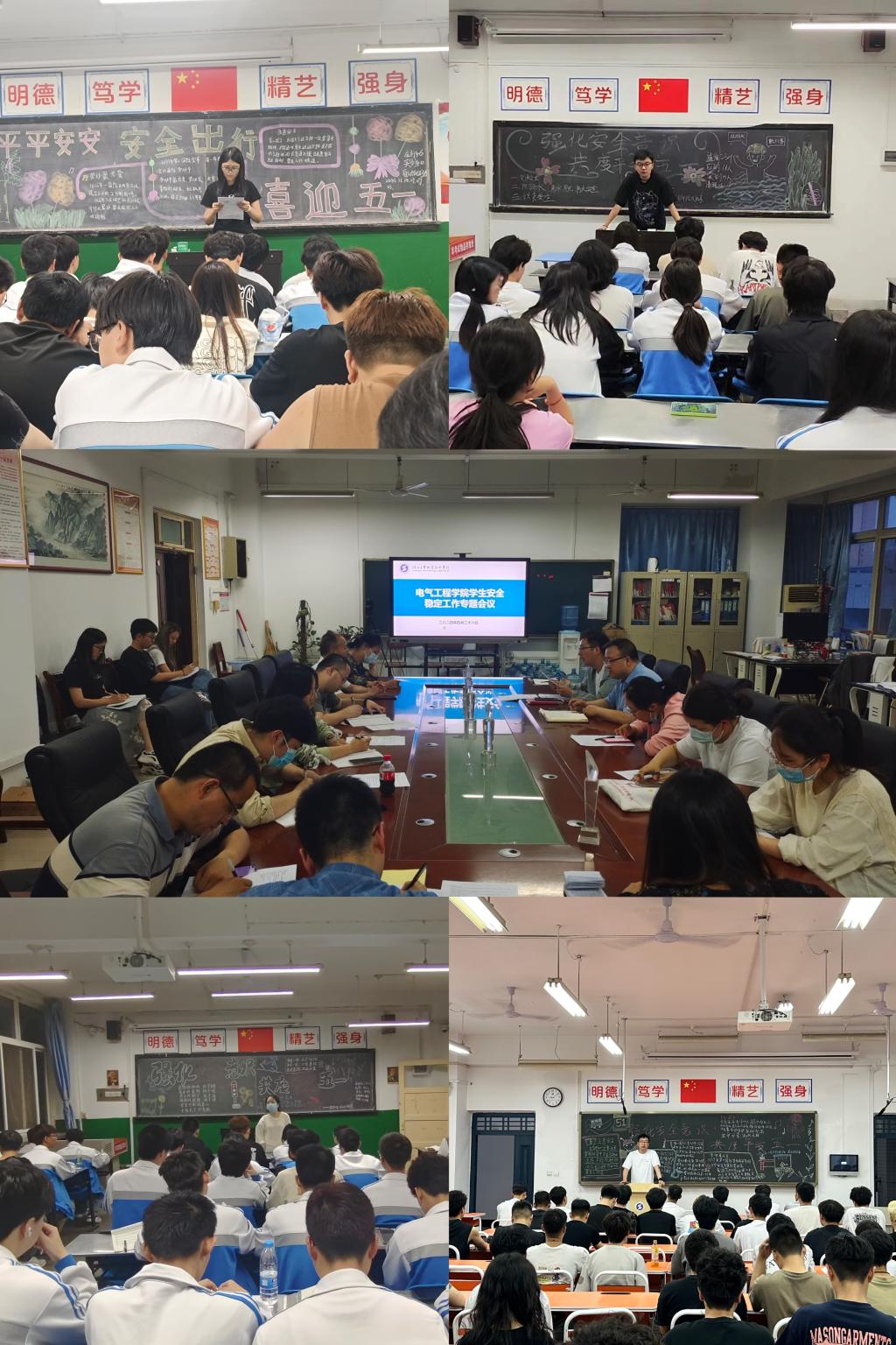 赵松老师首先传达了学生工作部(处)针对学校关于“五一”假期安全稳定工作的通知及相关精神,围绕假期安全稳定、摸排学生去向、留宿学生教育管理、宿舍用水用电、严格请销假制度、查寝日上报以及校园电动车管理等具体事项进行逐一讲解。各辅导员结合各自分管工作与近期工作事务做具体说明。电气学院党总支书记刘其兵向与会老师强调以下几点内容:一是高度重视班会质量,引导学生树立“安全第一”思想;二是严格审批学生请假事宜,精准掌握学生去向、离校学生行程轨迹,落实安全责任;三是强化安全工作机制,认真落实假期值班值守,妥善处理学生突发事件;四是加大巡查力度,节前开展寝室安全隐患大排查,筑牢校园安全防护网。