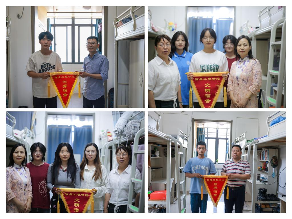 为落实学校第三届学生公寓“安全卫生月”活动的相关要求,进一步加强学生公寓安全教育,营造温馨舒适的寝室环境。5月23日下午,信息工程学院开展最美宿舍授旗活动。信息学院党总支书记王伟和党总支副书记郭新玲带队,学工办全体辅导员以及部分学生干部参加了授旗活动。