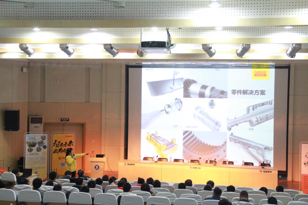 FANUC公司技术总监候长合介绍了目前工业机器人、数控机床、测量技术的应用和未来发展趋势。他向师生们展示了一幅未来智能制造的蓝图,并详细讲述了工业4.0、中国制造2025的发展理念、构架;同时,通过展示工业发展不同阶段对技术性人才能力要求的特征,介绍了现代工厂用人要求及智能制造业中数控、机电等相关工作岗位以及其要求并展示了智能工厂环境。雷尼绍公司工程师作了编码器研发制造、在线测量、3D打印等先进前沿技术的报告;山特维克公司工程师主要作了刀具制造、快速换刀、减震刀具、云端刀具数据管理的先进技术报告。FANUC教育合作部经理高志国工程师从技术、设备、技能、素质等角度讲述了他眼中的“工匠精神”,对我们尚在求学中的“未来职业人”提出了期望。