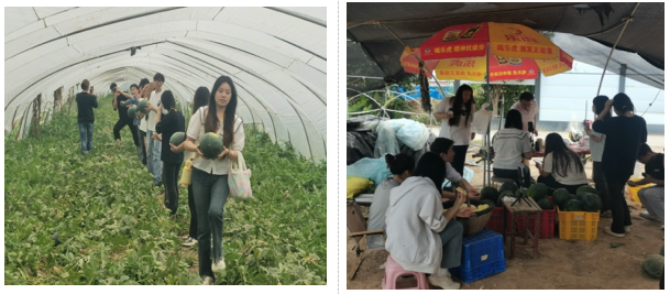 活动筹备期间,商贸学院市场营销专业依托数字营销实训平台,走出传统教室,走进田间地头,对学院周边瓜农进行实地调研,巧妙将课程学习与社会实践相融合。学生们不仅精心制作了视频宣传材料,还在网络平台上开展了公益直播带货,利用现代营销手段为当地农产品拓宽销路,有效推动了农产品销售与品牌推广,充分展现了混合式教学模式下学生实践创新能力的提升。