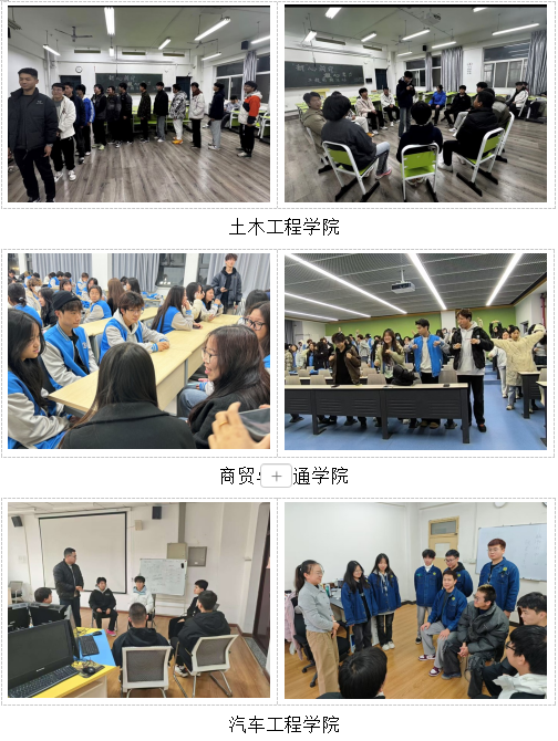 11月下旬,心理咨询中心组织了教师团体辅导技能培训,旨在增强教师队伍的心理辅导能力,为后续的班级心理辅导活动打下坚实基础。依托第一阶段培训成果,各二级学院积极响应,由班主任组织在班级内部开展了丰富多彩的团体辅导活动。这些活动形式多样,既有增强团队凝聚力主题的团体辅导,也有情绪管理和压力释放的团体辅导工作坊,有效帮助新生快速融入集体,提升自我认知与调节能力,为大学生健康生活和成长奠定了良好的心理基础。