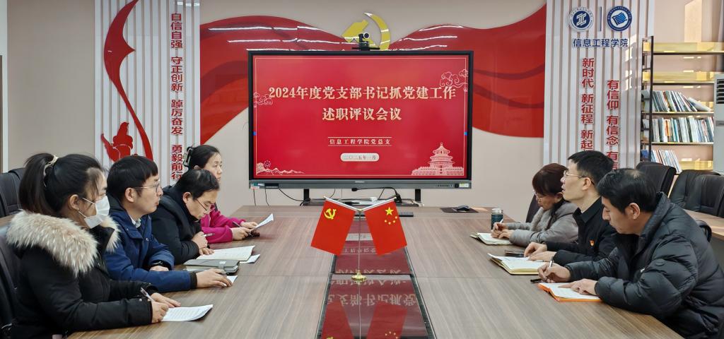 为推进全面从严治党向基层延伸,促进基层党支部标准化、规范化建设,1月9日下午,信息工程学院党总支在崇理楼C总支党员活动室召开2024年度党支部书记抓党建工作述职评议会,党总支班子成员、各党支部书记参加,党总支书记王伟主持会议。
