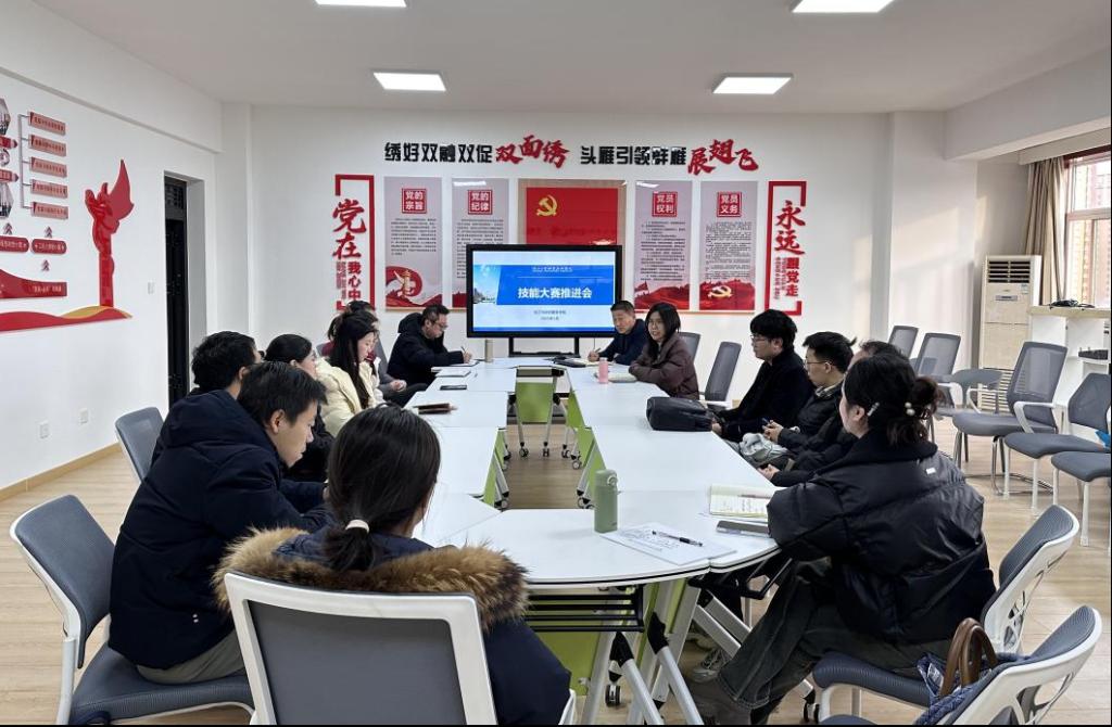 为强化技能大赛指导老师之间的协作交流和经验共享,科学分析2025年职业院校技能大赛赛项规程与赛题,明确集训目标,夯实训练计划,1月10日下午,化工与纺织服装学院成功召开了技能大赛推进会,学院党总支书记杨修国、实训中心主任梁博及各参赛队伍指导教师参加了会议。会议由化工与纺织服装学院院长刘迪主持。