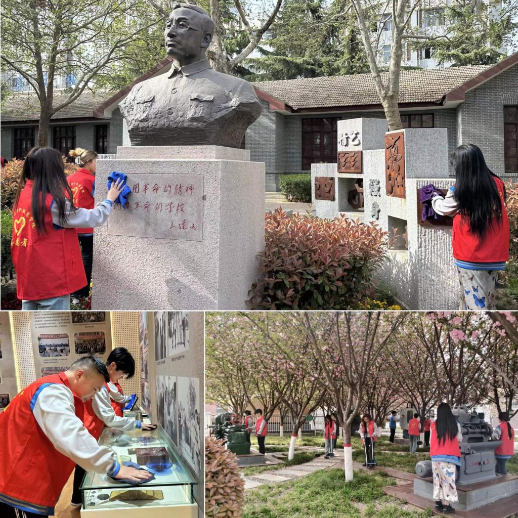 扫帚与落叶共舞,擦布让雕塑闪耀发光。清扫绿化带、整理校友捐赠文物展区,通过老教工口述校史,强化学生爱校荣校意识。清理机床文化展陈设备、规整工具模型,邀请劳模工匠示范操作机床,感悟“工匠精神”内涵。