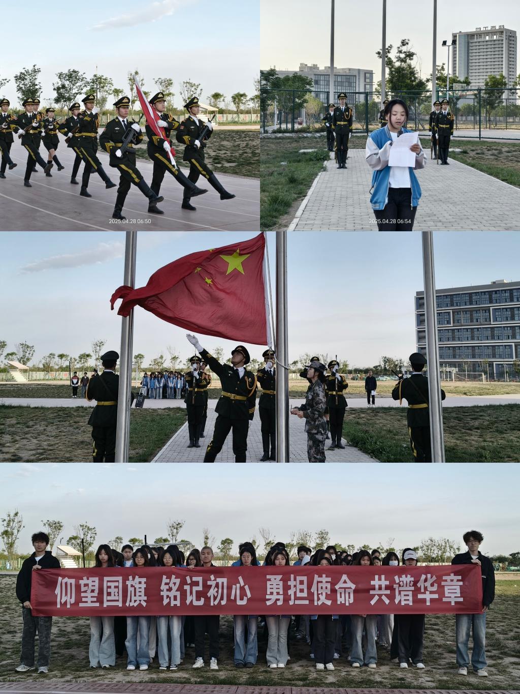 4月28日清晨,财经学院师生代表在新校区操场上举行了主题为“仰望国旗,铭记初心,勇担使命,共谱华章”的国旗下成长主题教育活动。