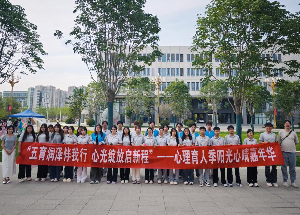 为引导学生关注心理健康,培育积极心理品质,5月27日下午,学生处心理咨询中心在我校渭城、经开两个校区同步开展 “五育润泽伴我行,心光绽放启新程”阳光心晴嘉年华活动。初夏的校园绿意盎然,欢声笑语不断,全校3000余名师生参与其中,在五育融合的趣味体验中感受心灵成长的力量。