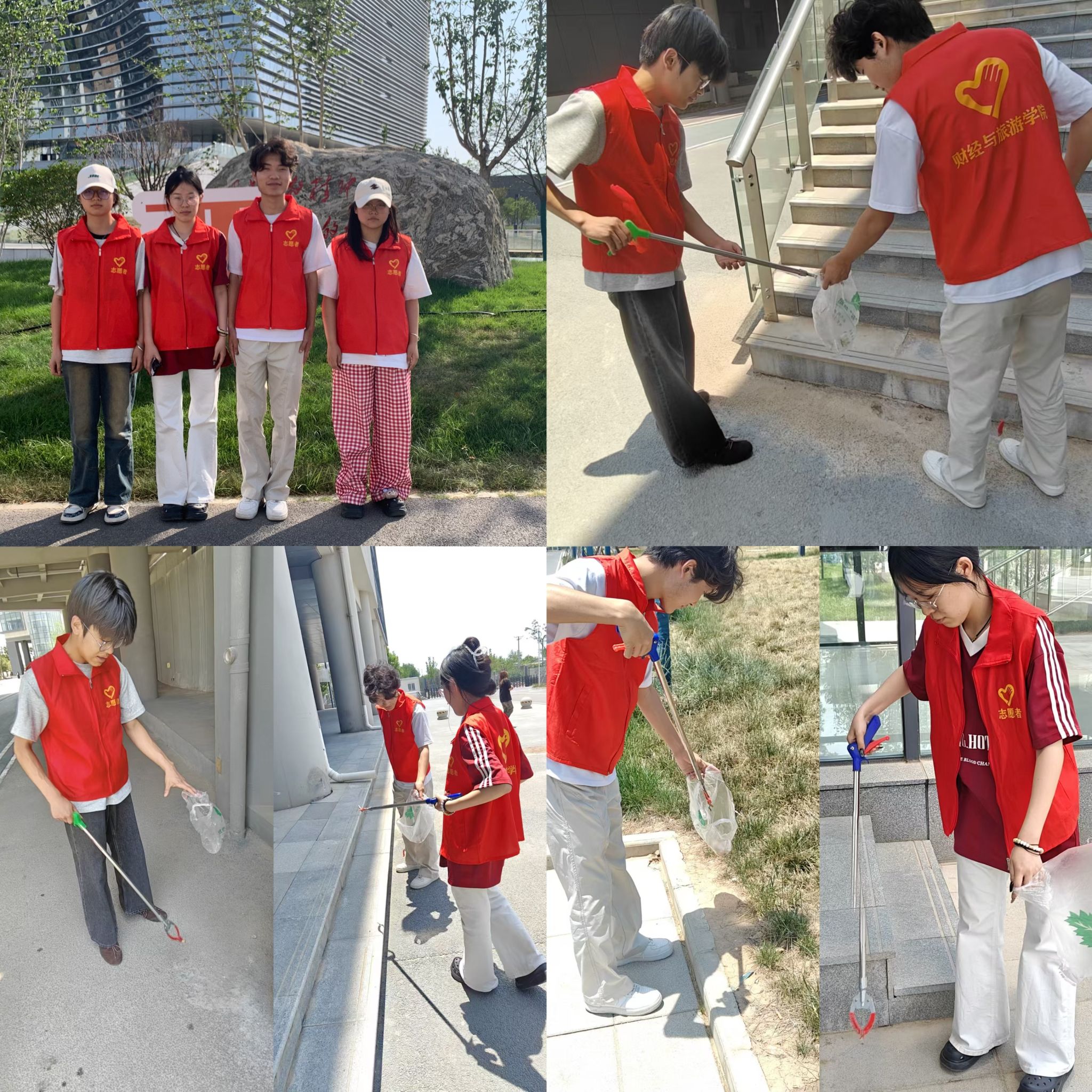 6月11日活动当天,在学院老师的带领下,参与活动的学生们早早集合,领取夹子、垃圾袋等清洁工具后,便分散到校园的各个角落。操场的草丛里、教学楼的拐角处、食堂周边的道路旁,都能看到他们俯身捡拾烟头、清扫垃圾的身影。尽管烈日炎炎,汗水浸湿了衣衫,但大家干劲十足,不放过任何一个卫生死角。