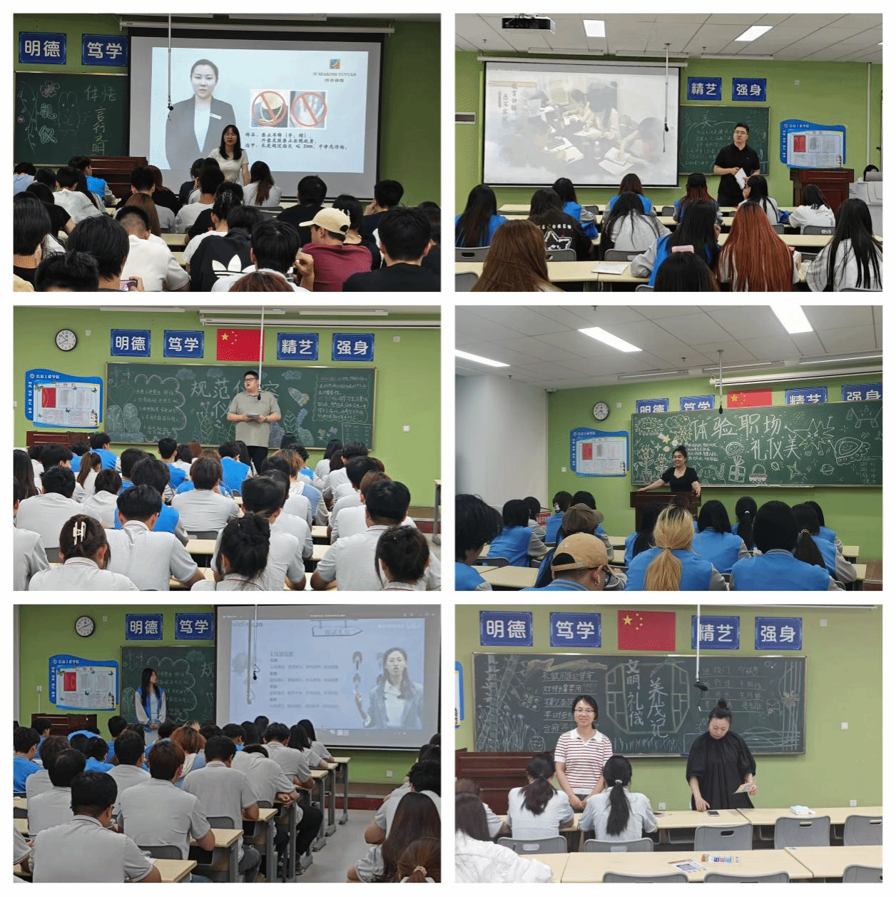 在活动组织方面,学院精心设计了多元化的教育形式。各班辅导员、班主任结合当代大学生的实际需求,通过典型案例分析深入浅出地讲解礼仪规范,并向全体同学发出“争做文明大学生”的倡议。在视听教学环节,各班精选了《礼仪的力量》、《职场第一课》等优质视频资源,让同学们直观感受得体仪态的魅力。最受学生欢迎的情景模拟环节,各班设置课堂互动、面试现场、社交聚会等多个场景,同学们通过角色扮演的方式,在实践中掌握校园礼仪和职场礼仪的要领。
