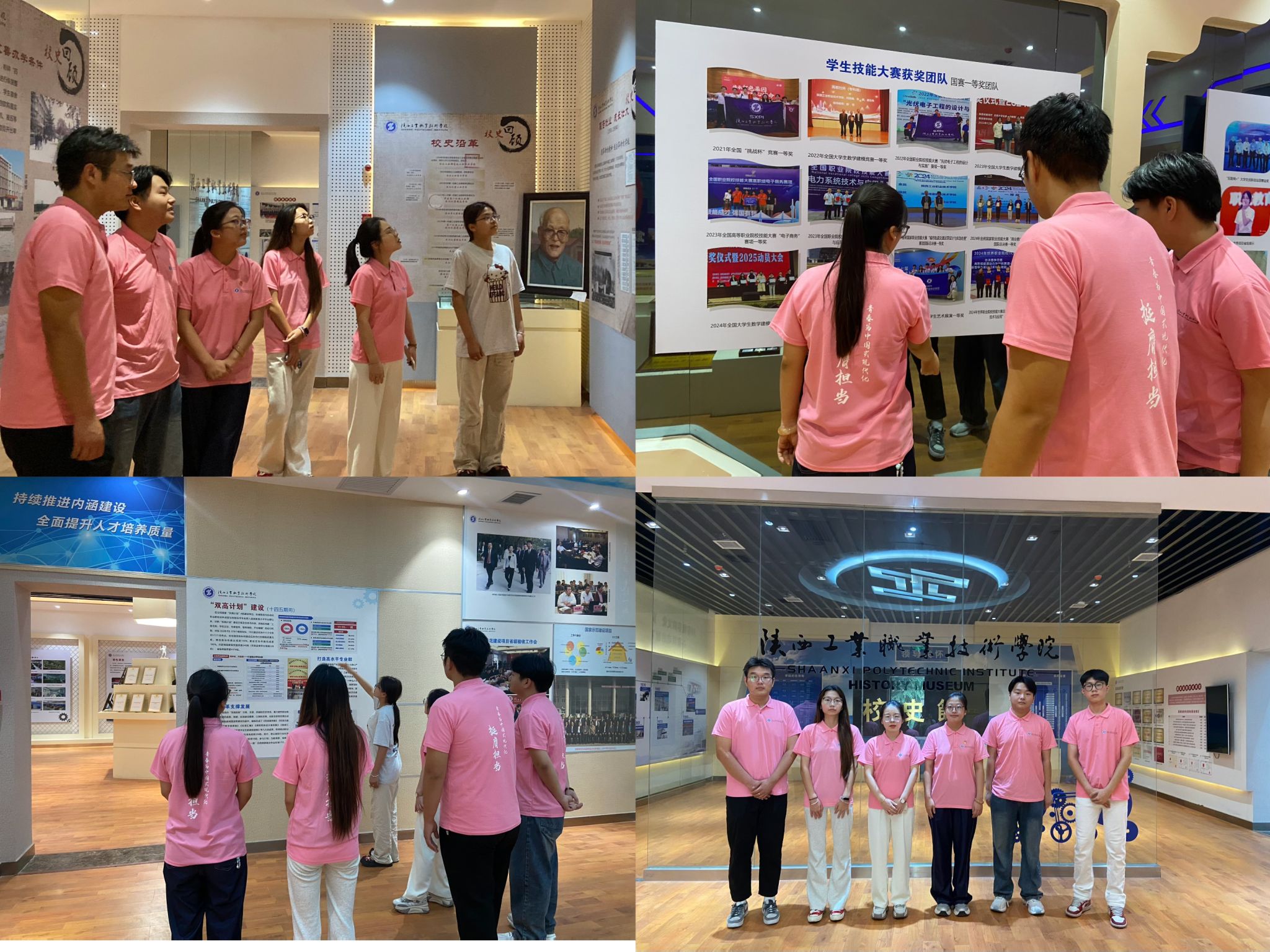步入校史馆,泛黄的老照片、珍贵的手稿、荣誉证书及各类史料生动再现了学校自成立以来的峥嵘岁月。从艰苦创业时期师生携手攻坚克难,到职业教育改革浪潮中勇立潮头;从重点专业建设实现零的突破,到双高计划建设取得丰硕成果,每一个历史节点都凝聚着历代陕工人的智慧与汗水。讲解员通过一件件实物、一幅幅照片,详细讲述了学校在人才培养、产教融合、社会服务等领域的跨越式发展历程,大家深刻感受到“明德、笃学、精艺、强身”校训背后的厚重底蕴。“看到前辈们在简陋条件下依然坚守育人初心,这种精神让我深受触动。”实践团成员吴永樊感慨道,“作为新时代职教学子,我们更要传承这份匠心,用专业技能为学校争光。”