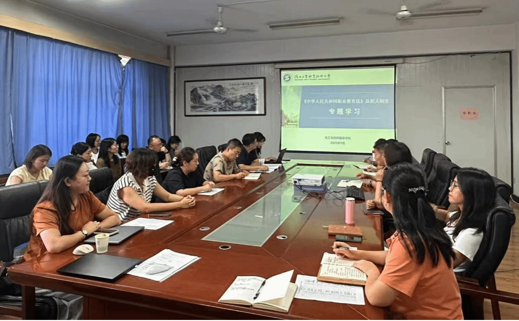 为深入贯彻落实新修订的《中华人民共和国职业教育法》,全面提升教师依法治教能力,推动学院高质量发展,化工与纺织服装学院于9月15日下午组织全体教师开展专题学习会,通过集体学习和交流发言等形式,系统学习《职业教育法》及相关制度文件,凝聚职业教育改革共识。