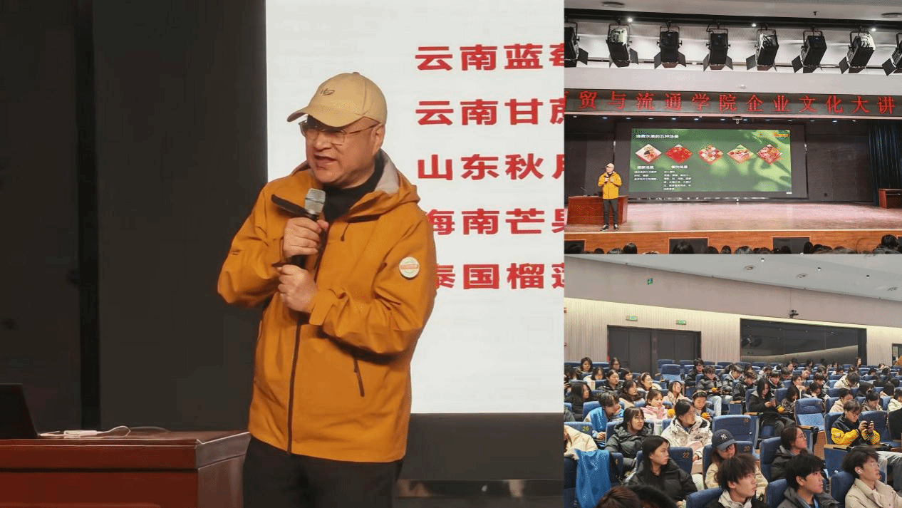 桂建江以“大秦果果——一个圆梦的平台”为主题,结合企业成长历程、发展战略与人才需求,向在场师生展开了一场内容丰富、贴近行业的分享。他围绕“我是谁、我从哪里来、我要去哪里”三个维度,系统阐述了大秦果果作为“优质水果经营者、品质生活倡导者、创业平台搭建者、社会责任承担者”的企业定位,生动呈现了企业从初创到区域龙头的发展脉络,并展望了未来成为西北地区水果零售行业标杆的愿景。