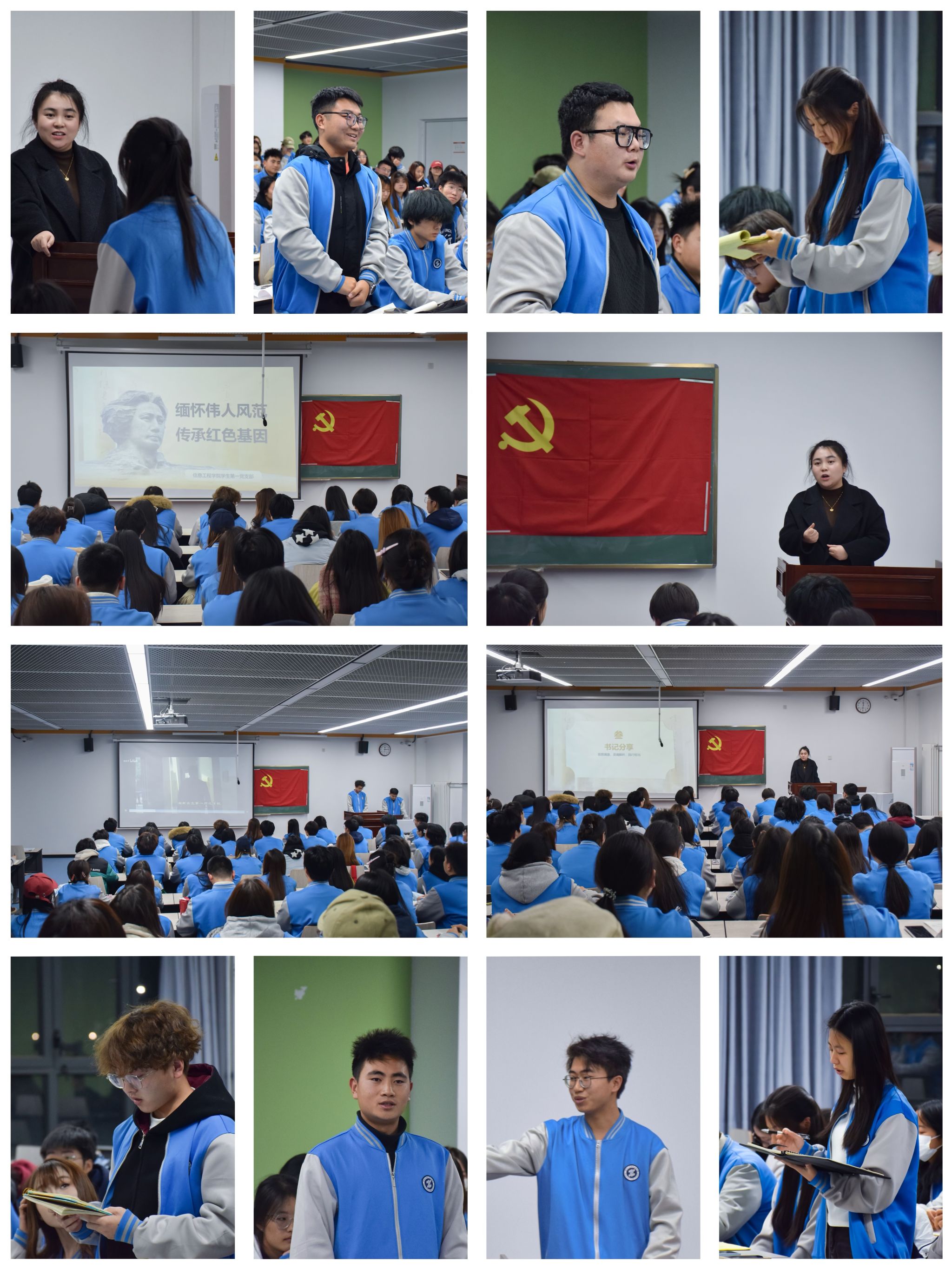 为深切缅怀伟大领袖毛泽东同志的丰功伟绩,深入学习贯彻党的二十届四中全会精神,激励广大青年党员与学子传承红色基因、担当时代使命,12月29日,信息学院学生第一党支部在崇理楼E101举办纪念毛泽东同志诞辰132周年专题党课暨主题党日活动。党员、发展对象、入党积极分子共计80余人参加了活动。