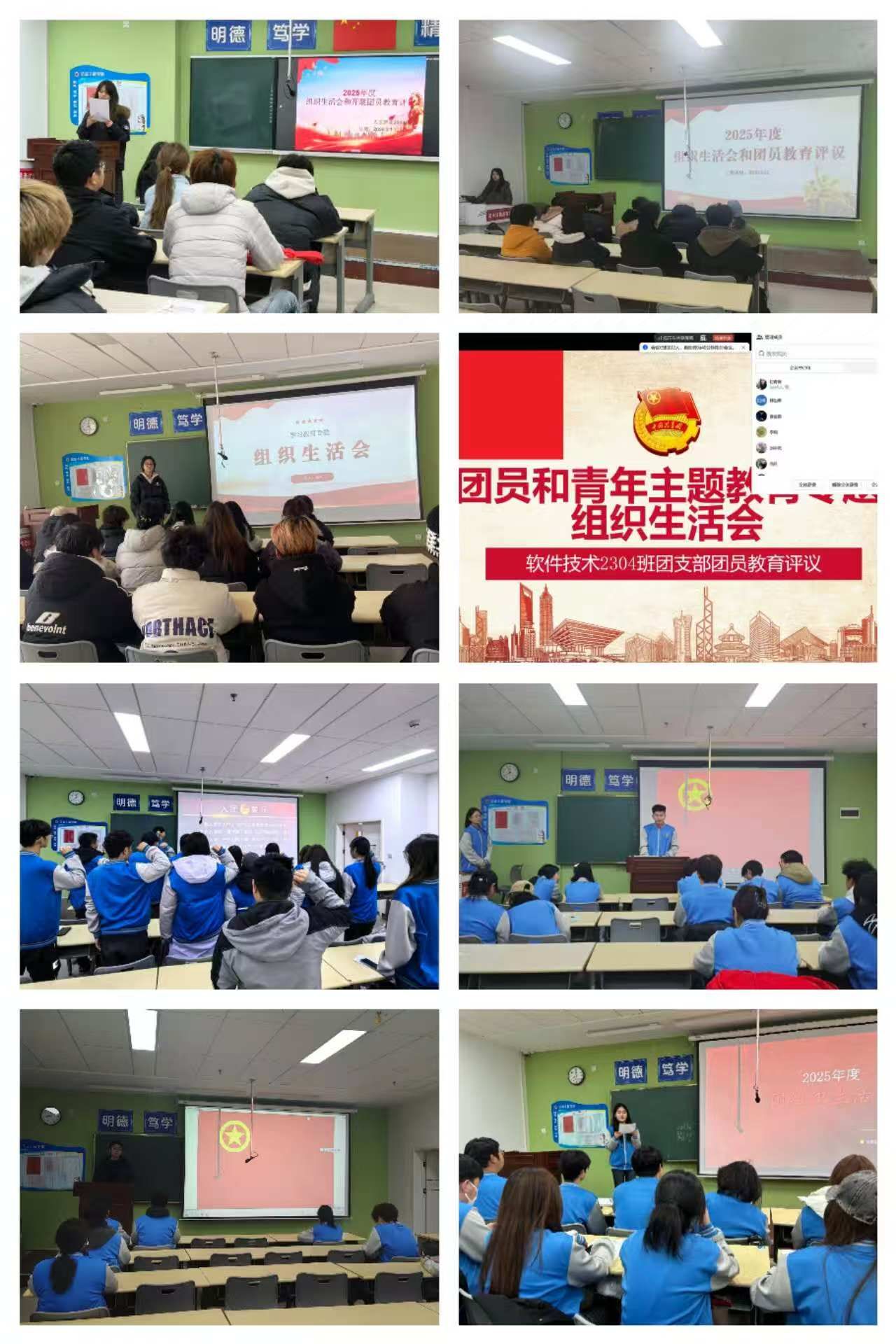 在团员教育评议环节,各支部按照有关要求,组织团员开展民主测评,综合日常表现和会议评议情况,对团员进行客观评价,并按程序形成评议意见报送上级团组织。班主任结合学生成长规律和专业学习特点进行指导发言,鼓励团员青年将思想提升转化为勤学笃行、服务集体的具体行动。会议最后,全体团员在团支部书记带领下重温入团誓词,进一步坚定了初心使命。