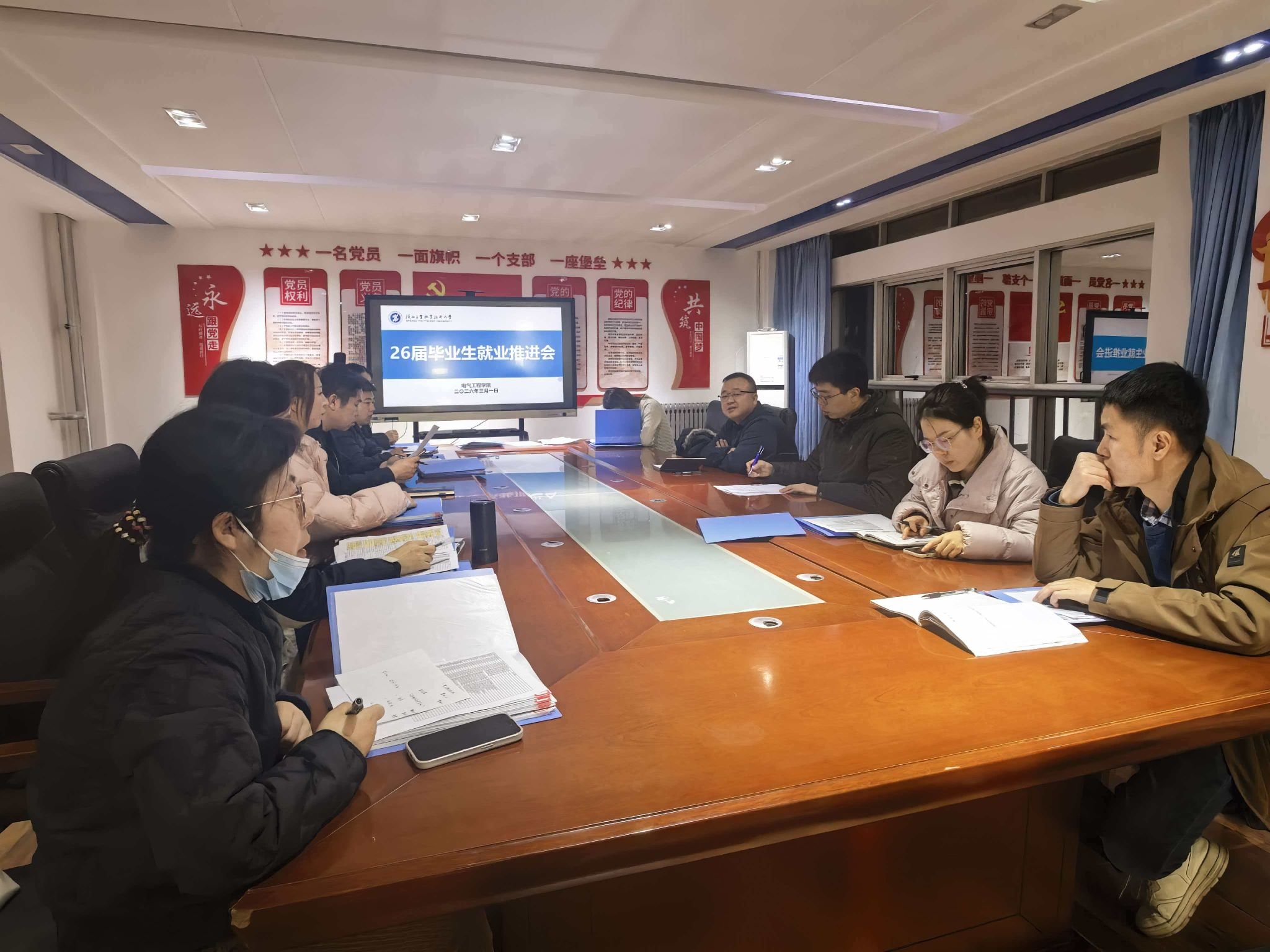 3月2日,电气工程学院在行知楼A506召开2026届毕业生就业工作专项推进会,学院党总支书记刘其兵、全体辅导员及2023级毕业班班主任参会,会议由学工办主任陈春山主持。