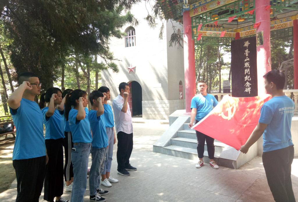 随后,党总支副书记程建卫在翠柏红亭下的爷台山战斗纪念碑前带领2018年度新发展的预备党员庄严宣誓,“我志愿加入中国共产党,拥护党的纲领……”。全体党员用洪亮的声音向党旗做出最庄严的承诺。
