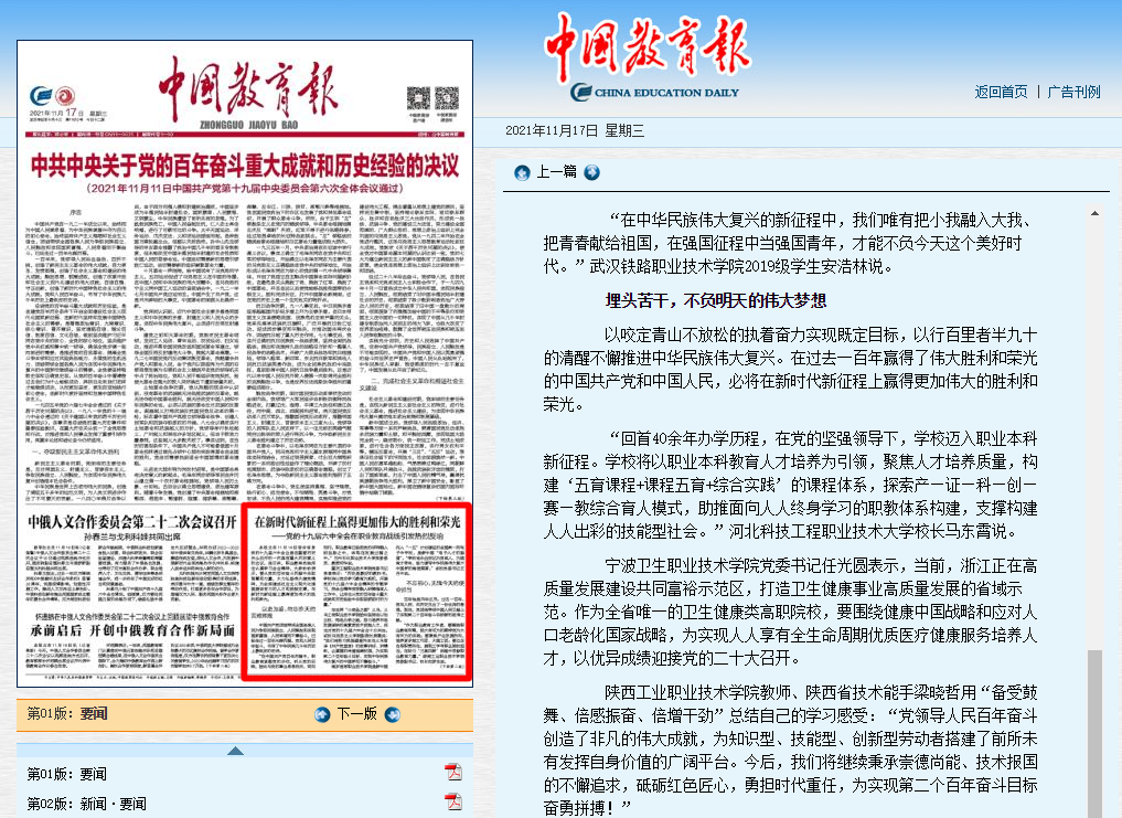 ——党的十九届六中全会在职业教育战线引发热烈反响